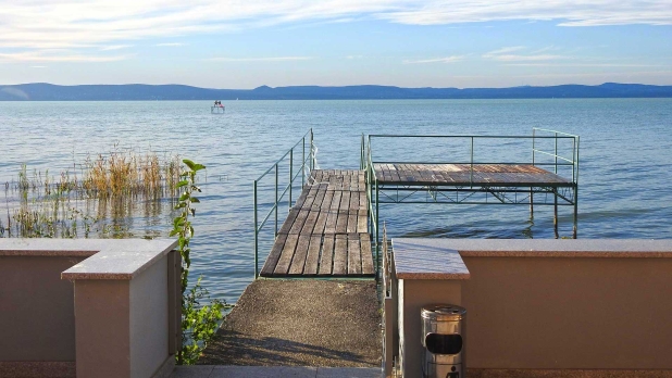 A 41 méter partszélesség, nagyon széles rálátást biztosít a tóra. Nem hinném, hogy sok ilyen hely lenne a Balatonnál. Az ilyen, és ehhez hasonló ingatlanok ritkák, nem állnak korlátlanul rendelkezésre. A teraszról közvetlen kijárat van a saját stégre.